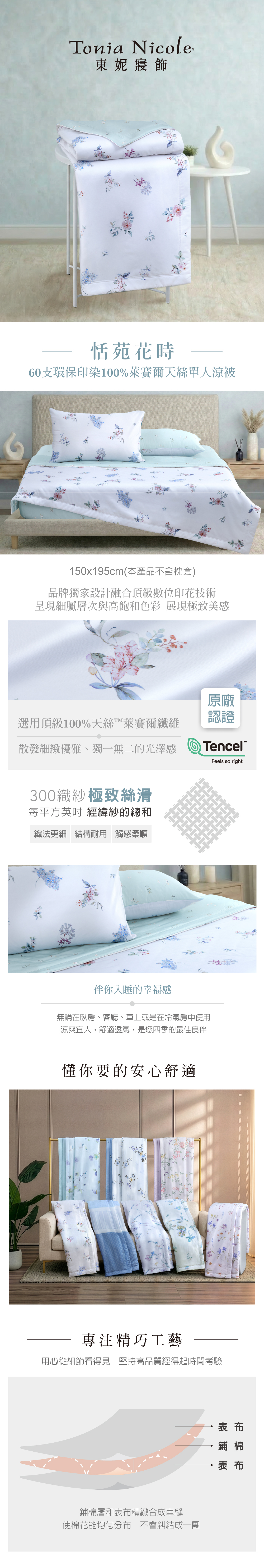 【Tonia Nicole 東妮寢飾】恬苑花時60支環保印染100%萊賽爾天絲涼被(單人150x195cm)