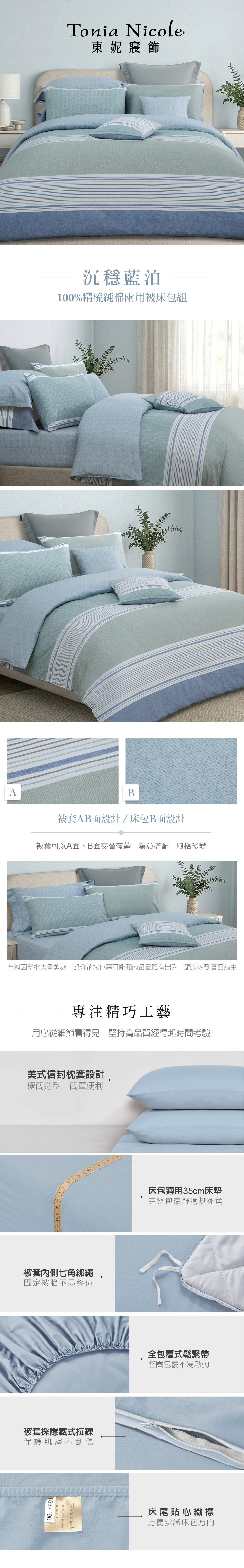 【Tonia Nicole 東妮寢飾】沉穩藍泊100%精梳棉兩用被床包組(雙人)