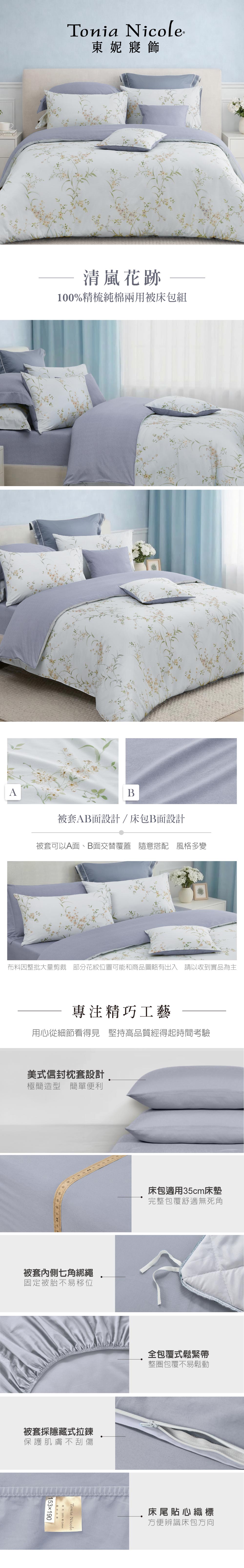 【Tonia Nicole 東妮寢飾】清嵐花跡100%精梳棉兩用被床包組(雙人)