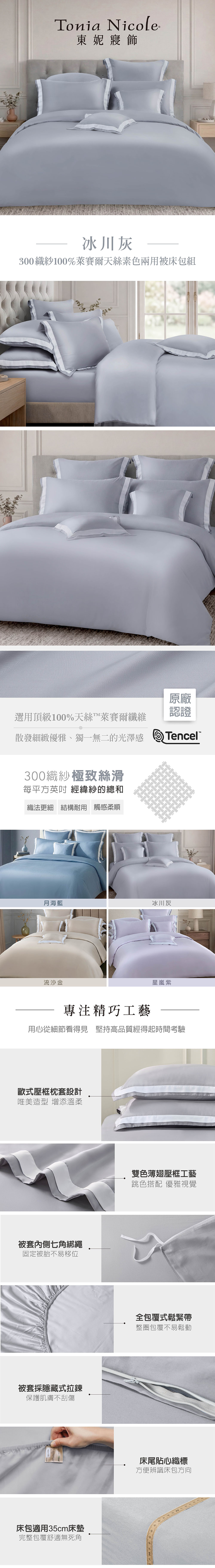 【Tonia Nicole 東妮寢飾】冰川灰300織紗100%萊賽爾天絲素色兩用被床包組(加大)