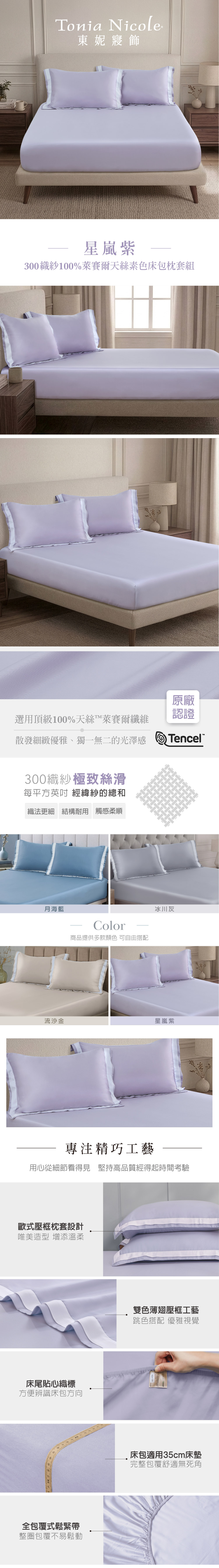 【Tonia Nicole 東妮寢飾】星嵐紫300織紗100%萊賽爾天絲素色床包枕套組(加大)