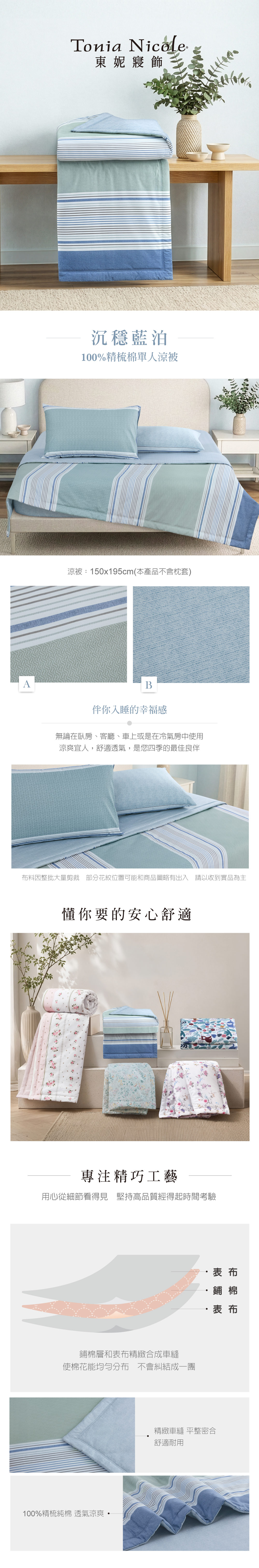 【Tonia Nicole 東妮寢飾】沉穩藍泊100%精梳純棉涼被(單人150x195cm)