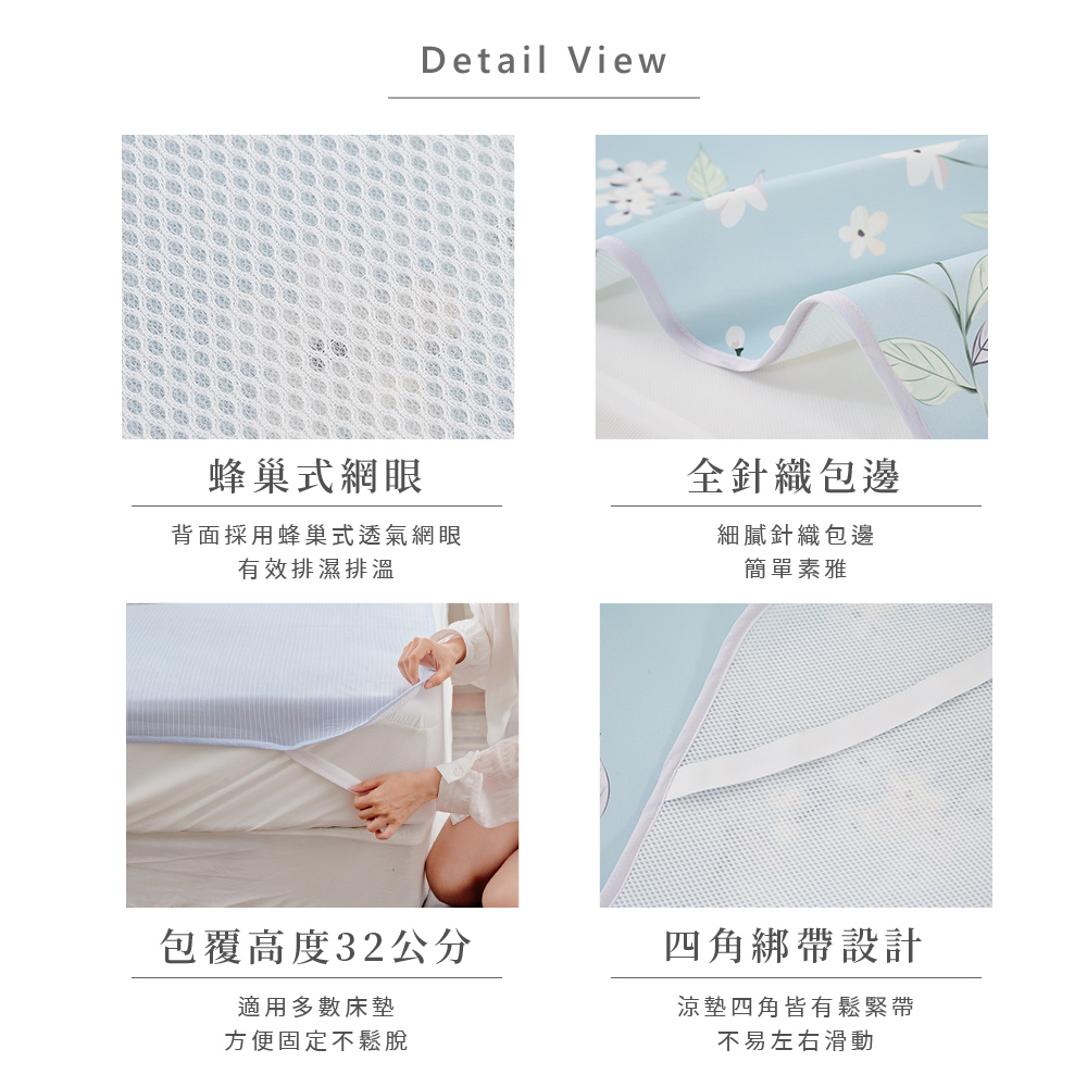 • 機能涼感冰紗纖維,接觸性瞬間降溫