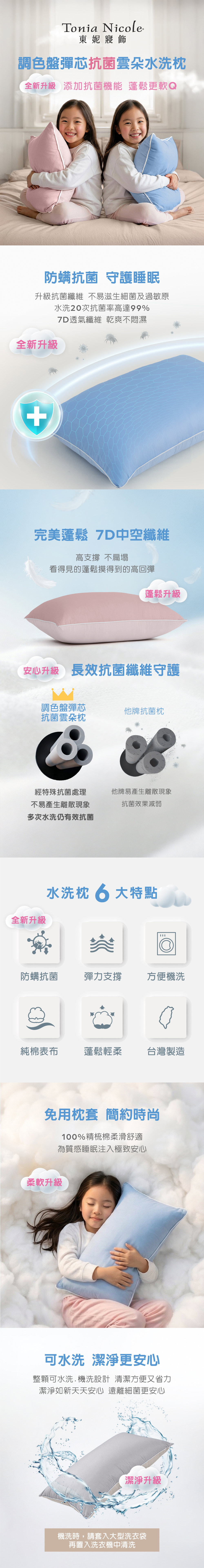 【Tonia Nicole 東妮寢飾】調色盤彈芯抗菌雲朵水洗枕2入組(多款任選)