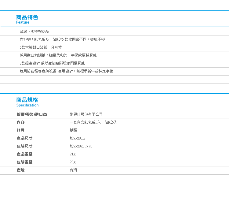 迪士尼紅包袋5入組 附貼紙 S5 Series