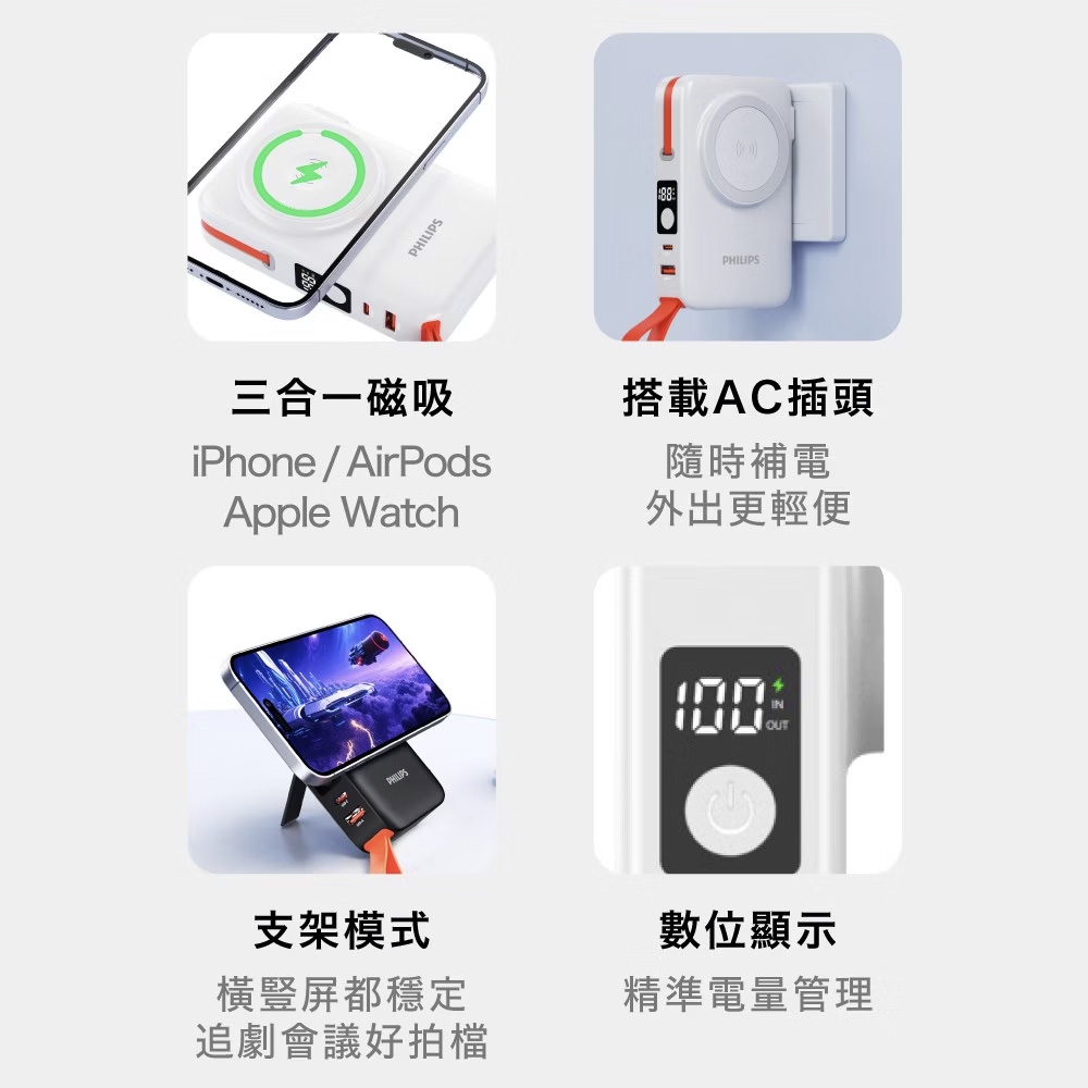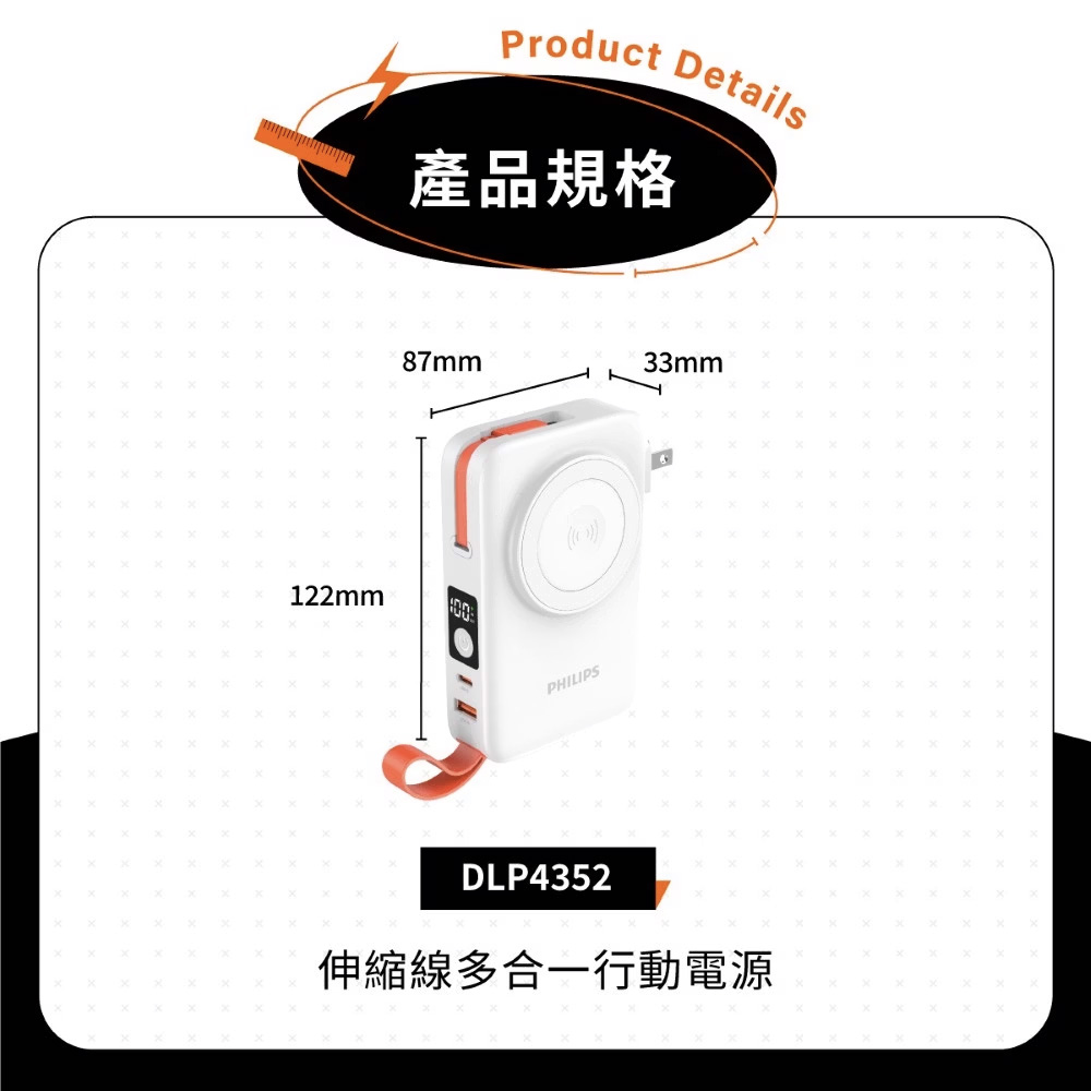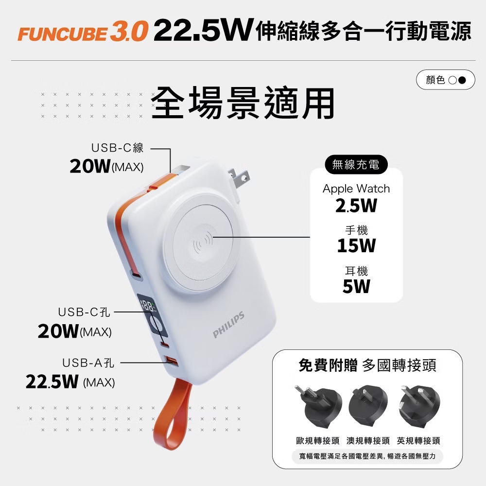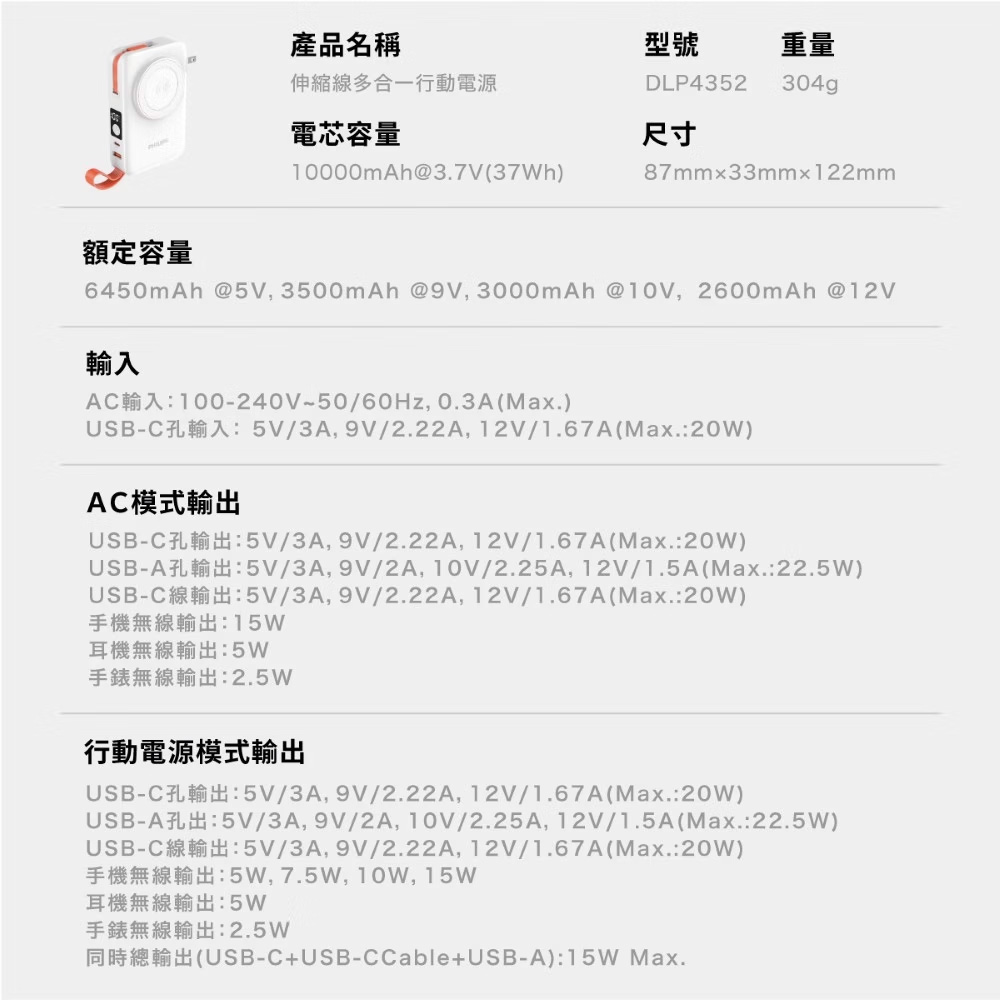 PHILIPS 飛利浦 伸縮線多合一行動電源(10000mAh)