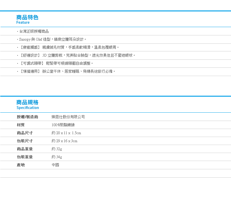 Peanuts史努比絨毛立體眼罩