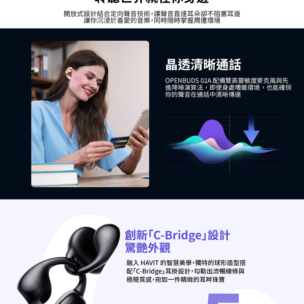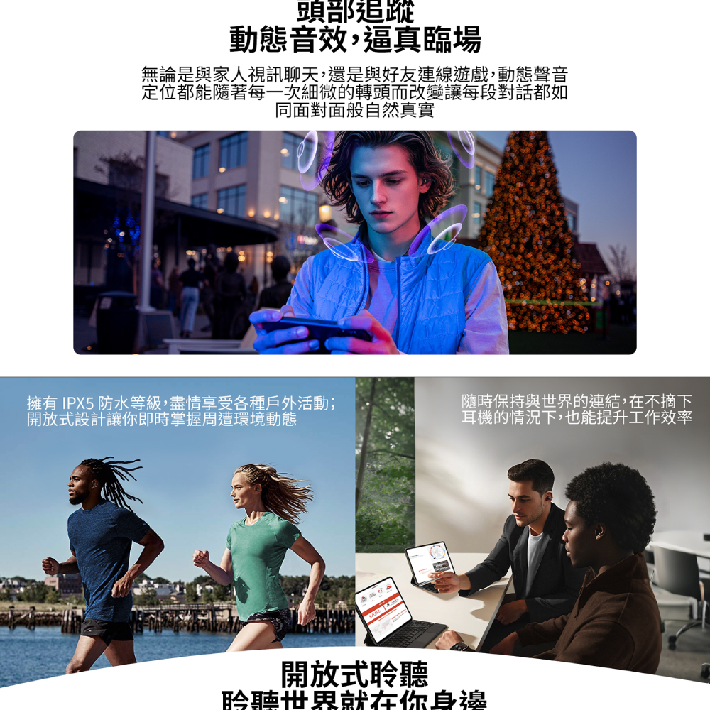 · 定向傳音技術,開放式聆聽更安全