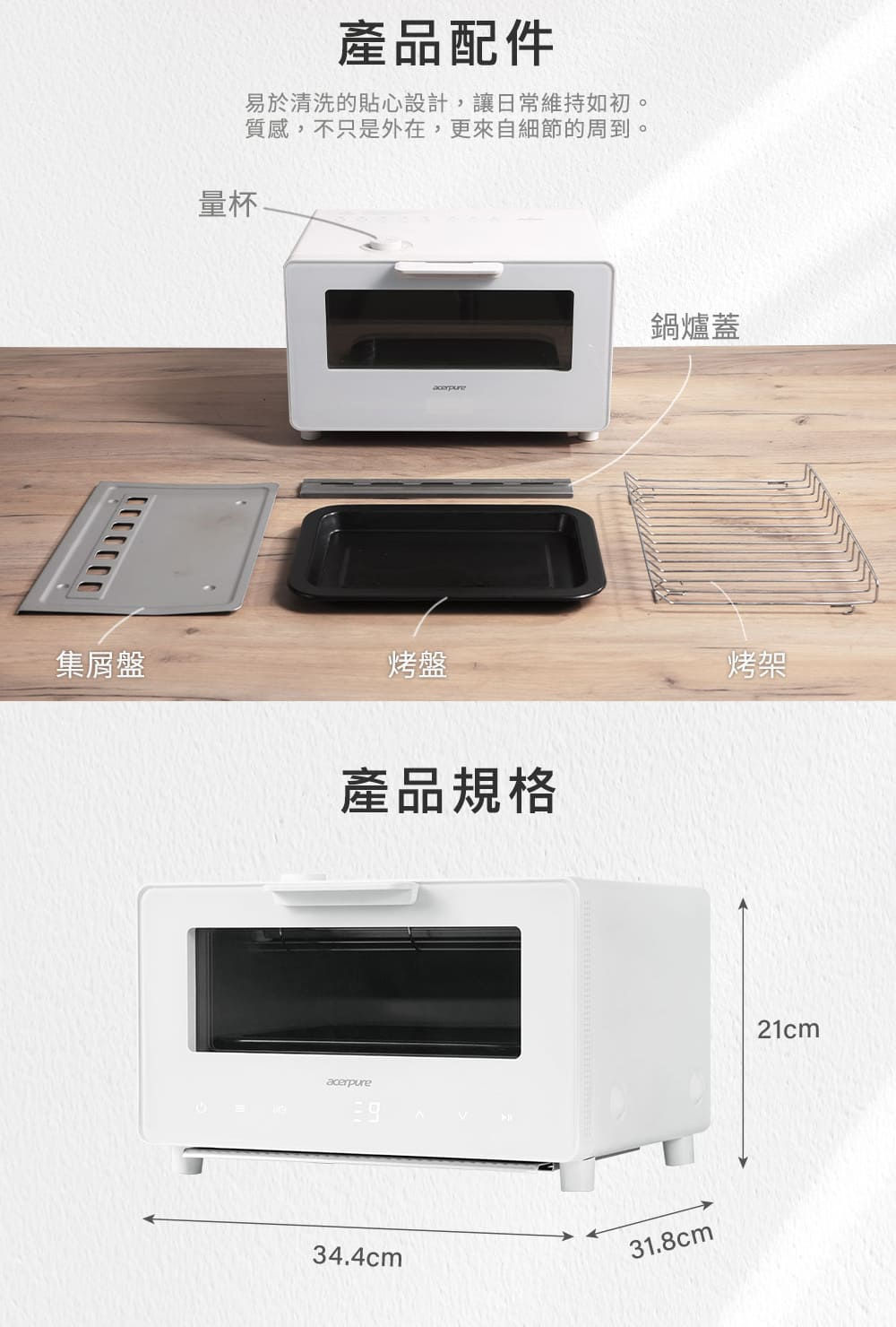 Acerpure Chef 10L智慧溫控蒸氣烤箱 KV544-50W 限量送7-11中杯美式提貨卡2張