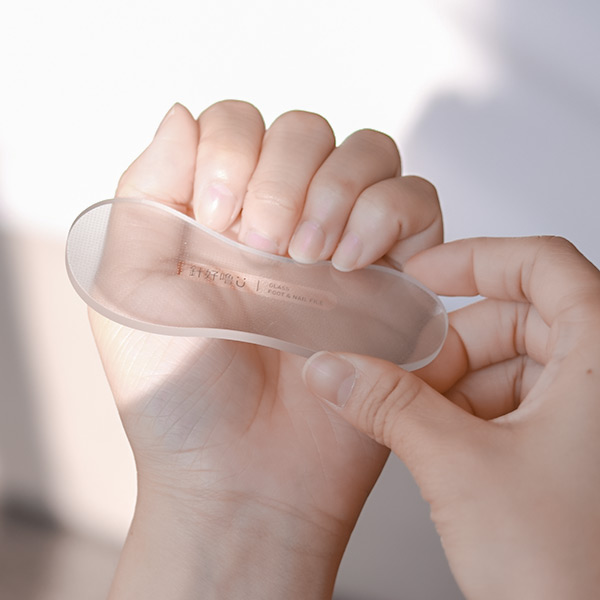 相較一般市面上的腳皮銼刀, 我們採用 100% 玻璃材質,並結合雷射雕刻技術,表面刻出三種不同的 3D 奈米級 細微顆粒紋路,讓你無需泡腳就能溫和的搓掉粗糙腳皮,不僅不怕生鏽、耐用還很好清潔!