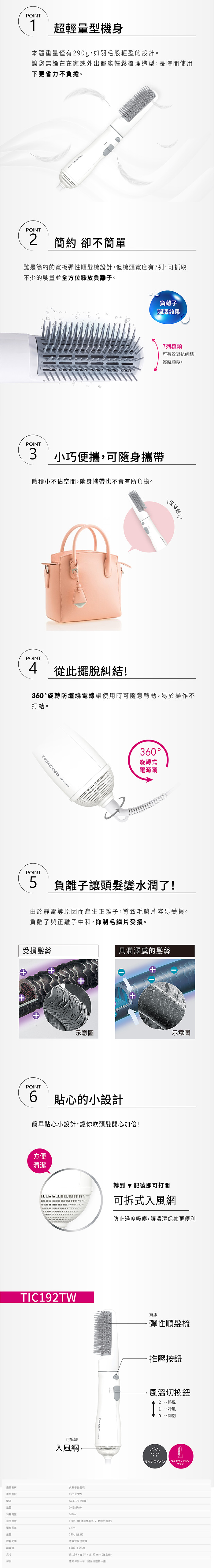 • 全方位負離子有效對抗糾結,輕鬆順髮