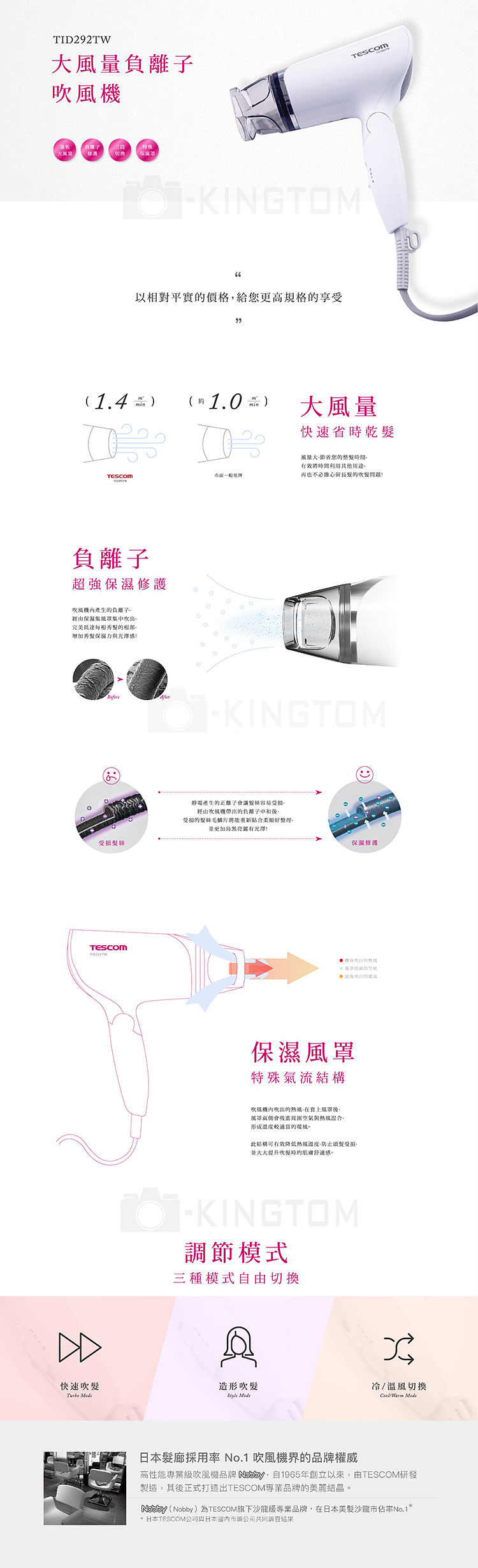 • 使用負離子, 成為水潤的髮尾