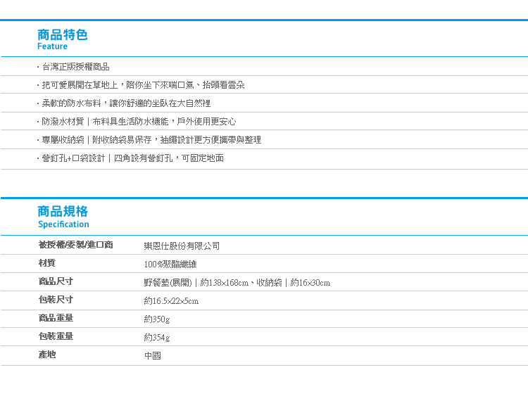 迪士尼小熊維尼野餐墊