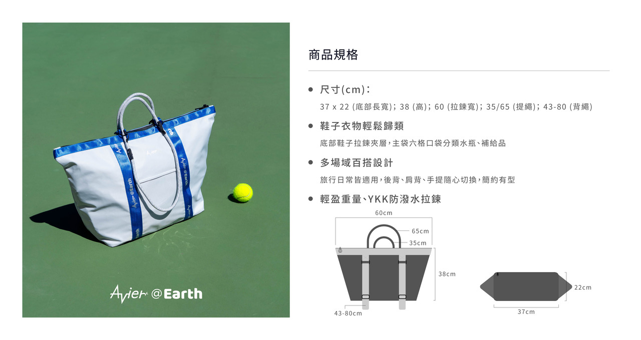 尺 寸:37 x 22 cm (底部長寬); 38 cm (高); 60 cm (拉鍊寬); 35/65 cm (提繩); 43-80 cm (背繩)