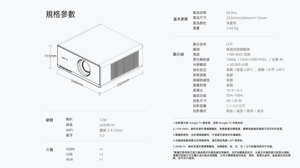 Wanbo 萬播投影機-X5 Pro 支援4K HBO MAX NETFLIX HDR10 HDMI 2.0 (加送原廠收納包)