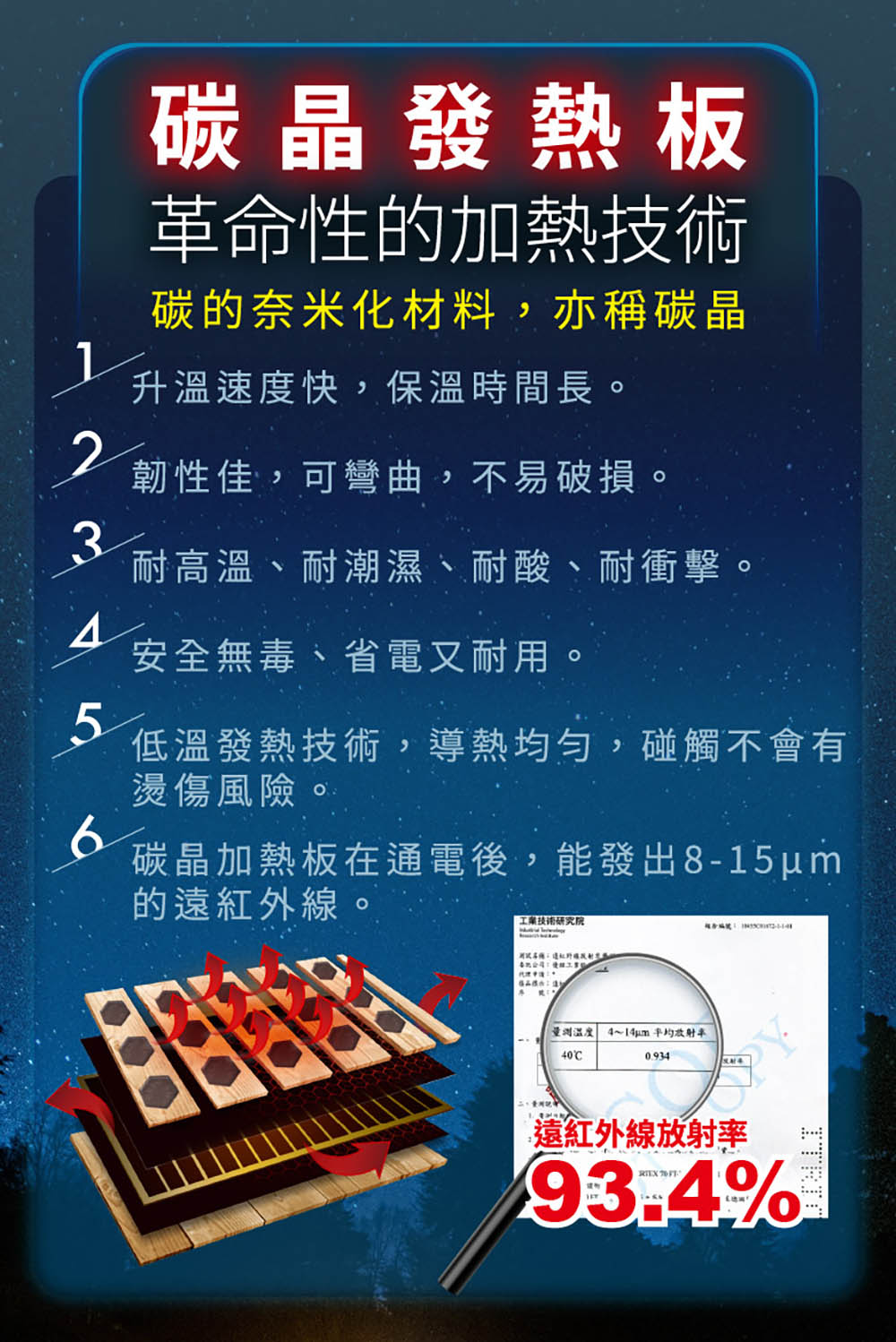 ■7片遠紅外線碳晶加熱板,加熱速度快
