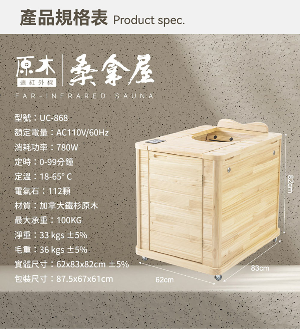【巧福】遠紅外線原木桑拿屋 UC-868 (全身型)