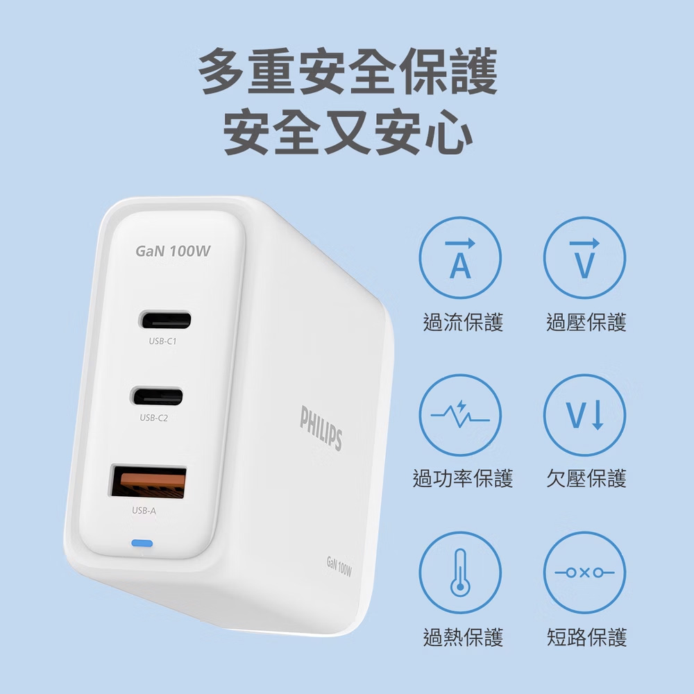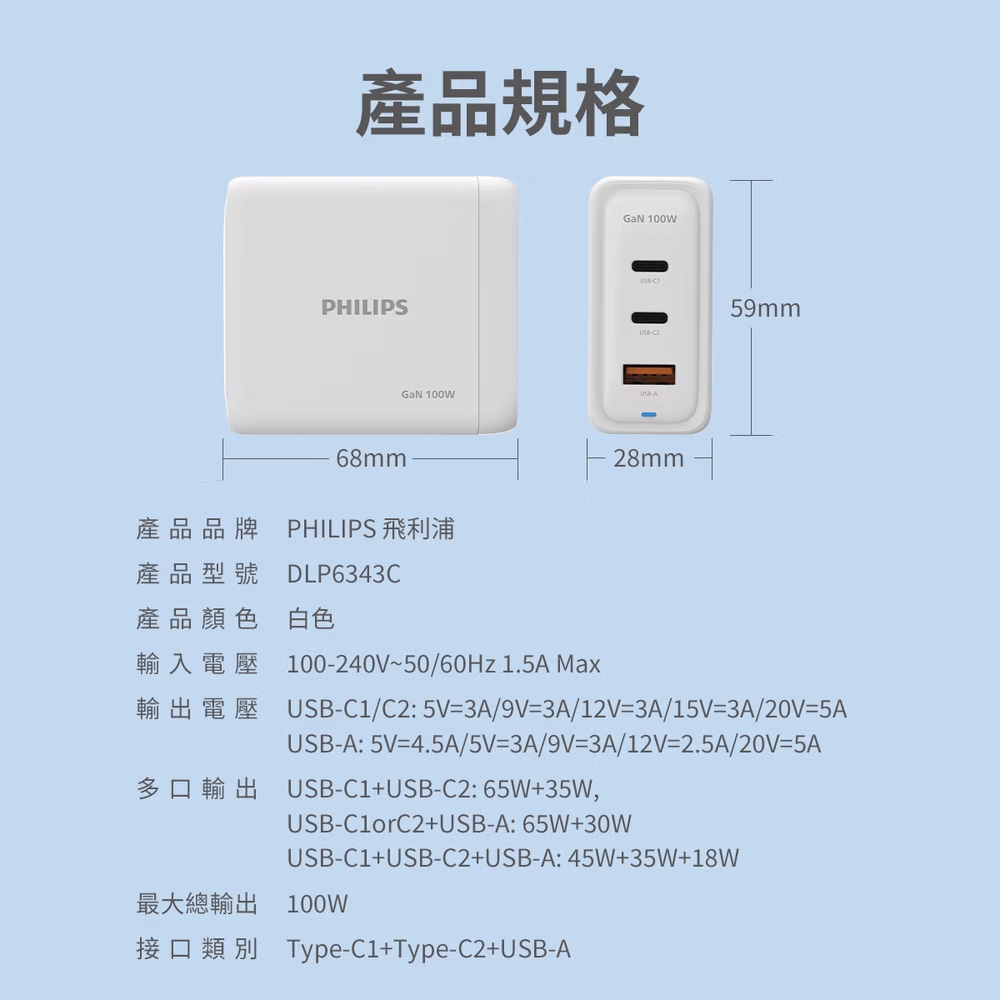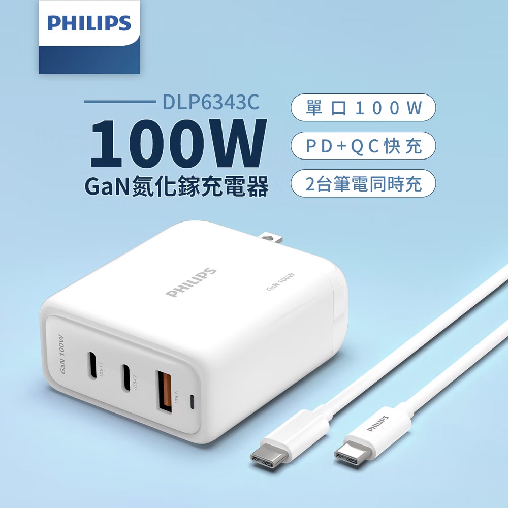 PHILIPS 飛利浦 GaN氮化鎵PD 100W旅充組