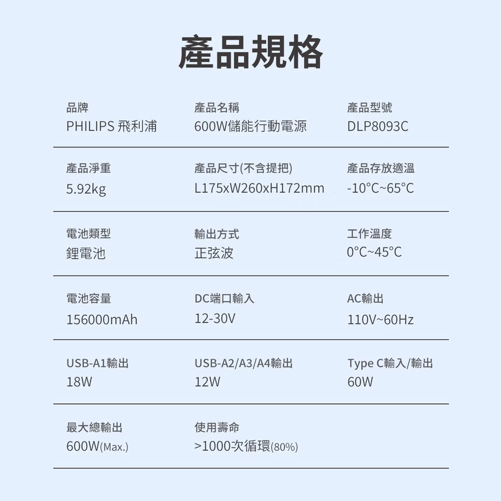 PHILIPS 飛利浦 600W儲能行動電源