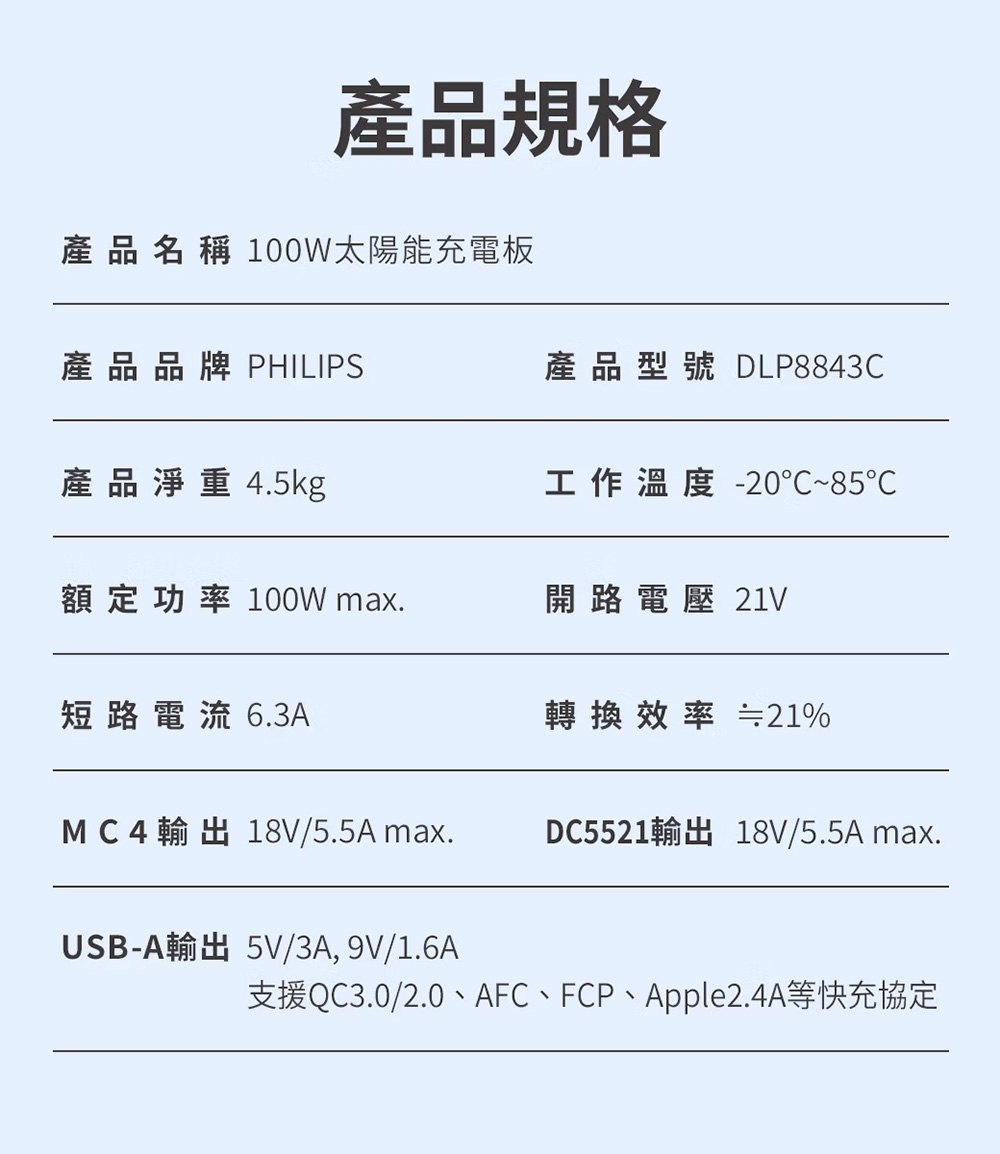 PHILIPS 飛利浦 100W太陽能充電版