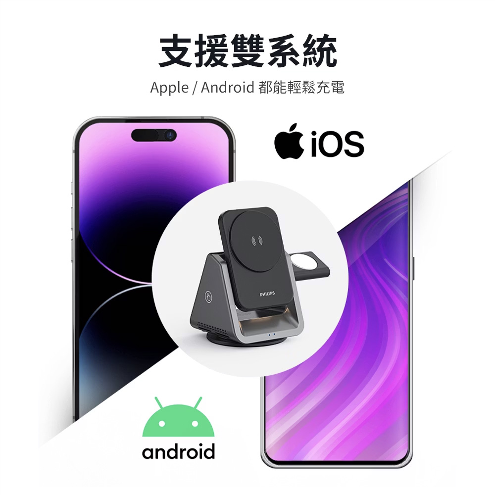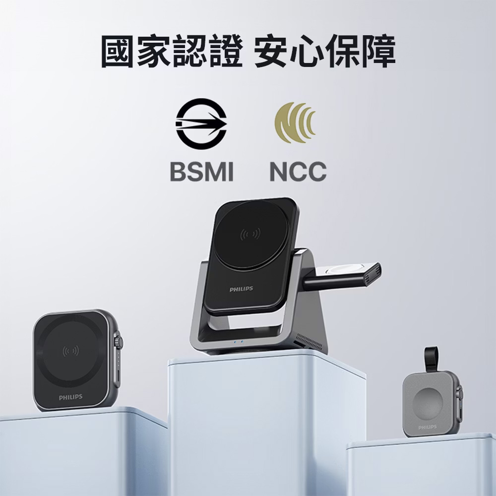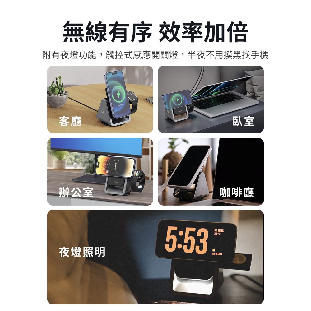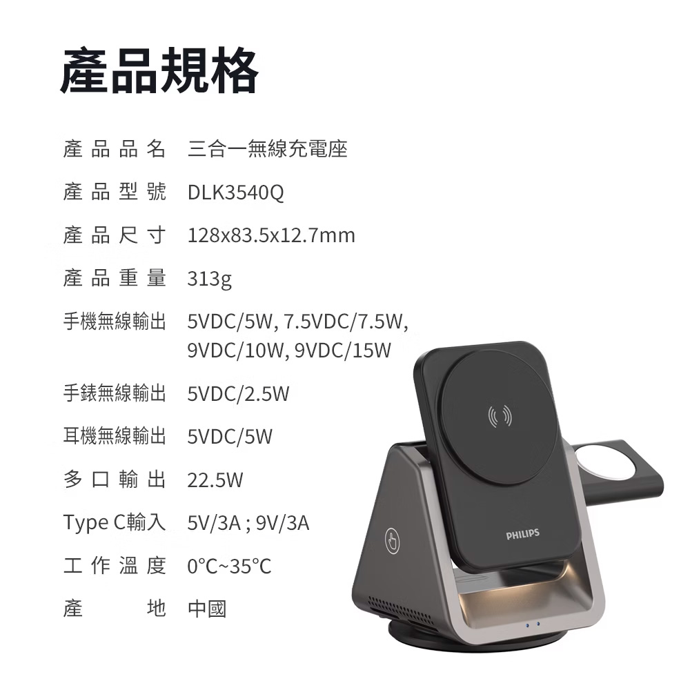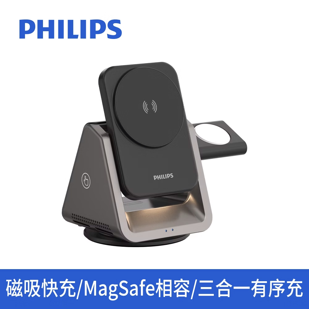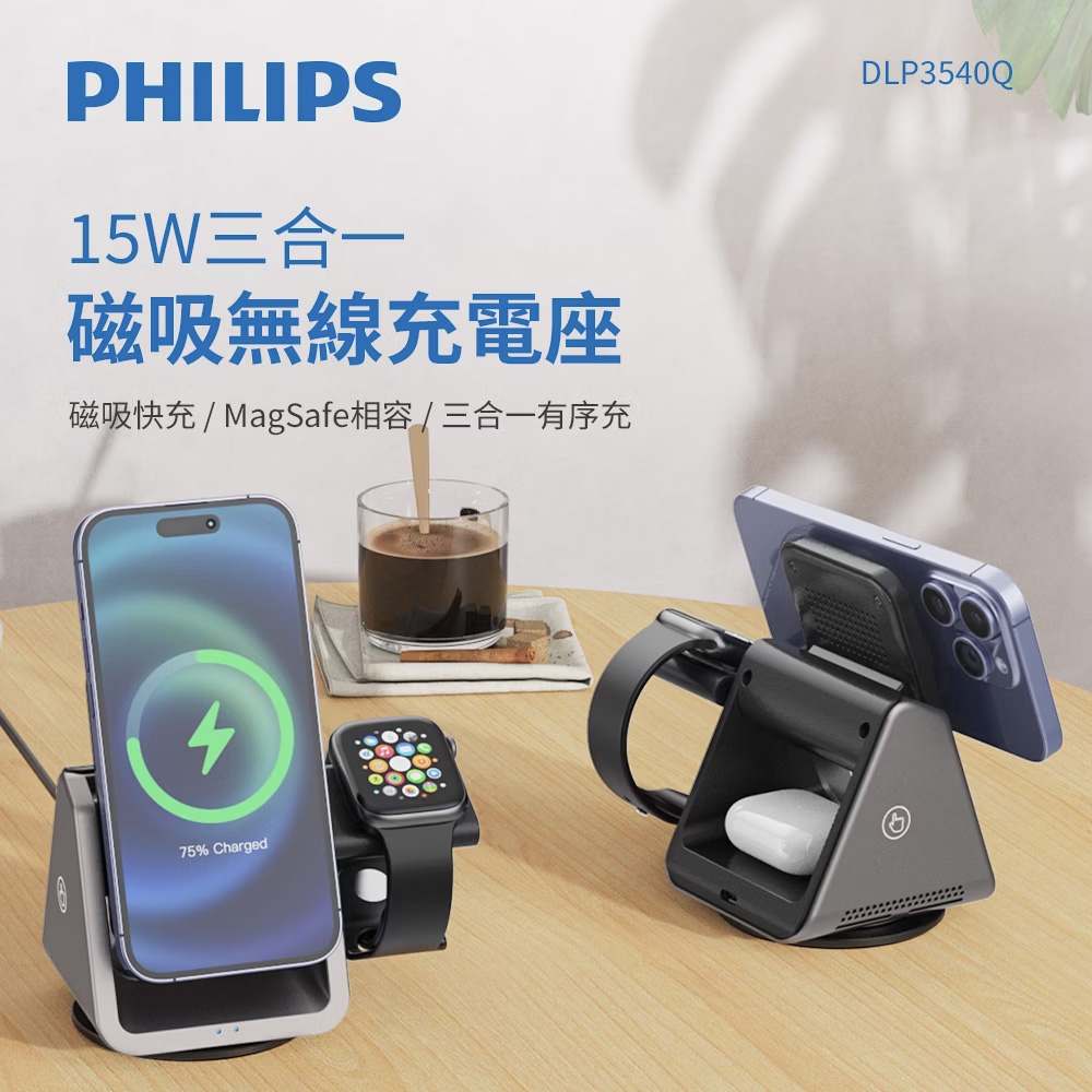 PHILIPS 飛利浦 黑金剛三合一磁吸充電座