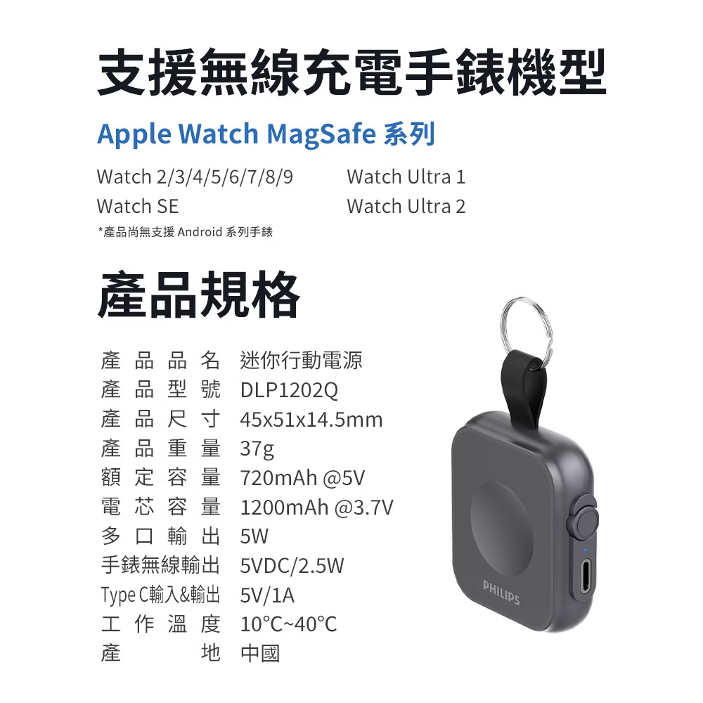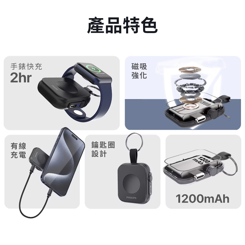 PHILIPS 飛利浦 黑金剛磁吸應急手錶行動電源