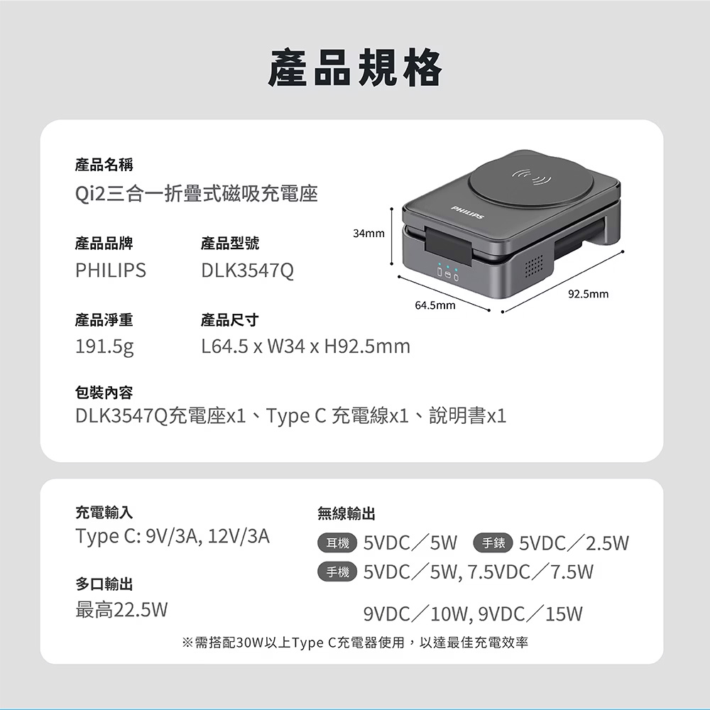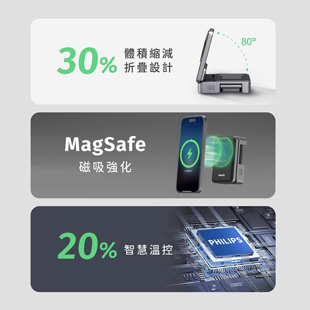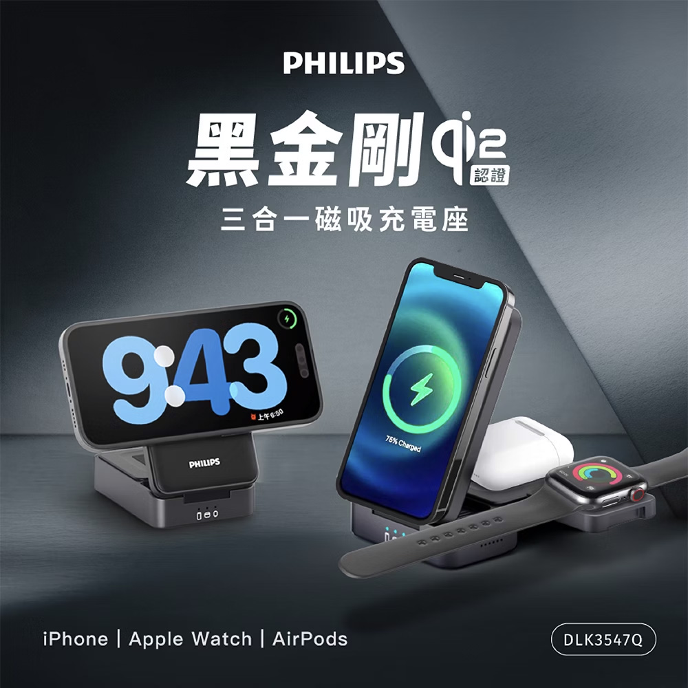 PHILIPS 飛利浦 Qi2 三合一磁吸充電座