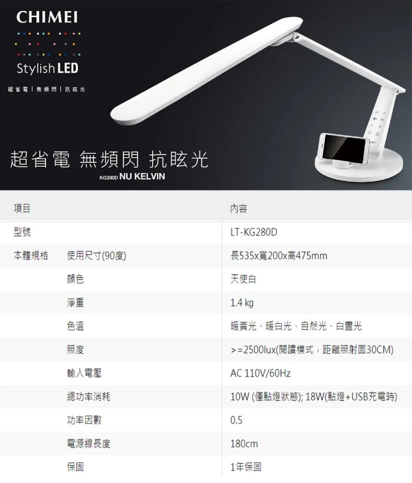 照度:>=2500lux(閱讀模式,距離照射面30CM)