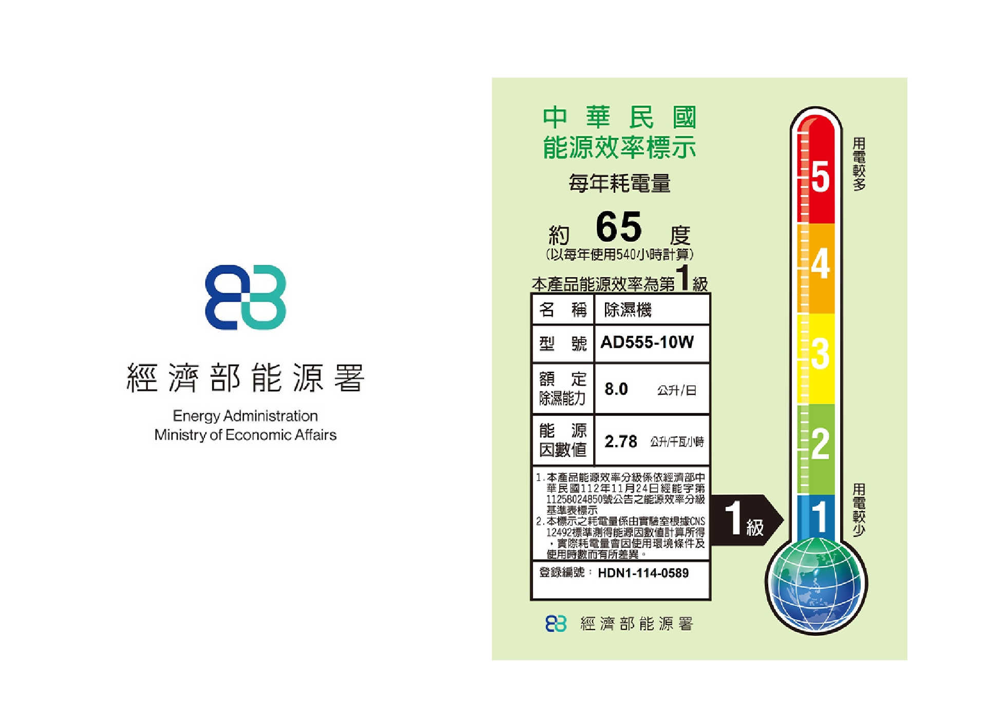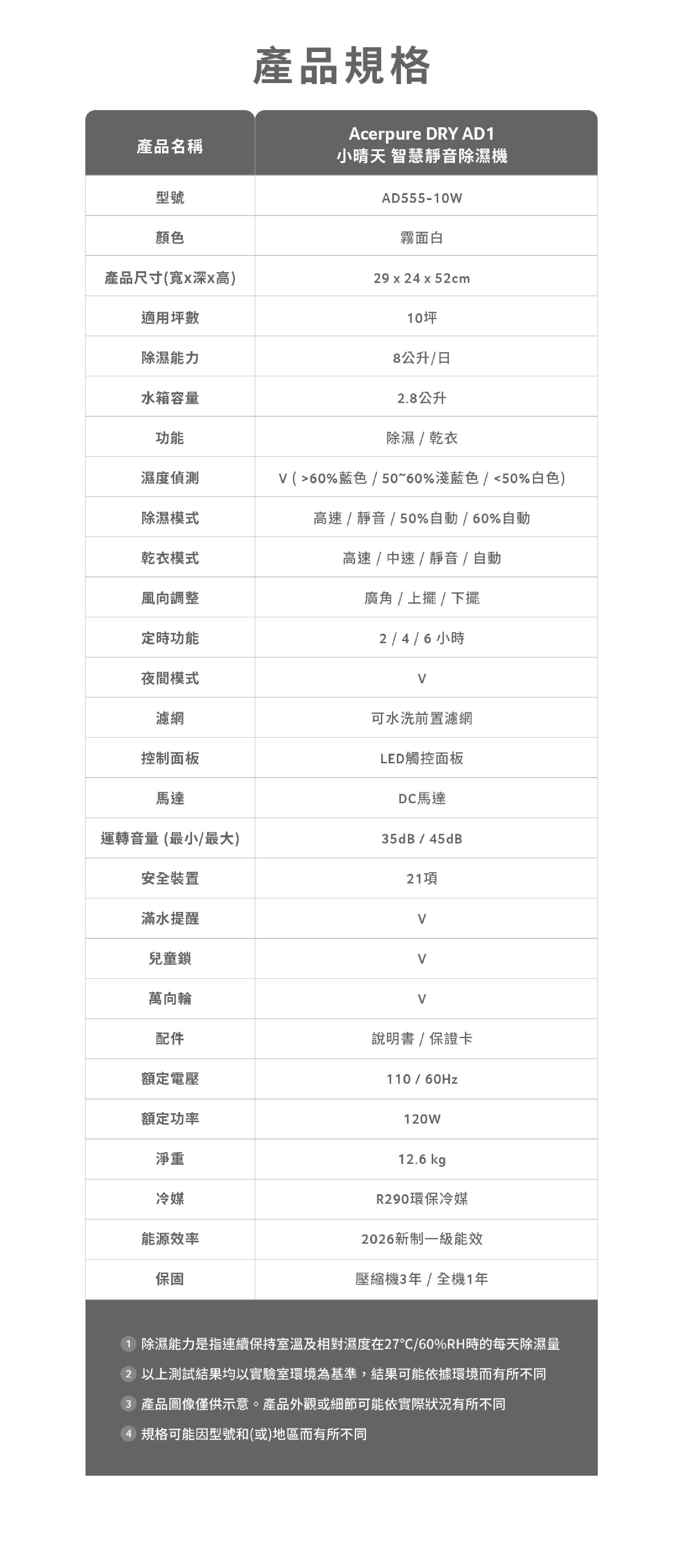 Acerpure DRY AD1 小晴天 8L智慧靜音除濕機 AD555-10W