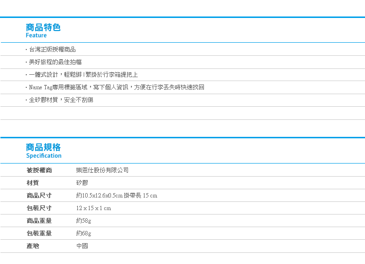 迪士尼牡蠣寶寶矽膠行李吊牌