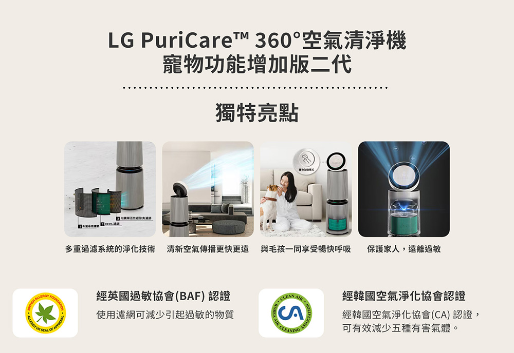 LG PuriCare™ 360°空氣清淨機 - 寵物功能增加版二代/建議適用30坪(雙層) AS101DBY0