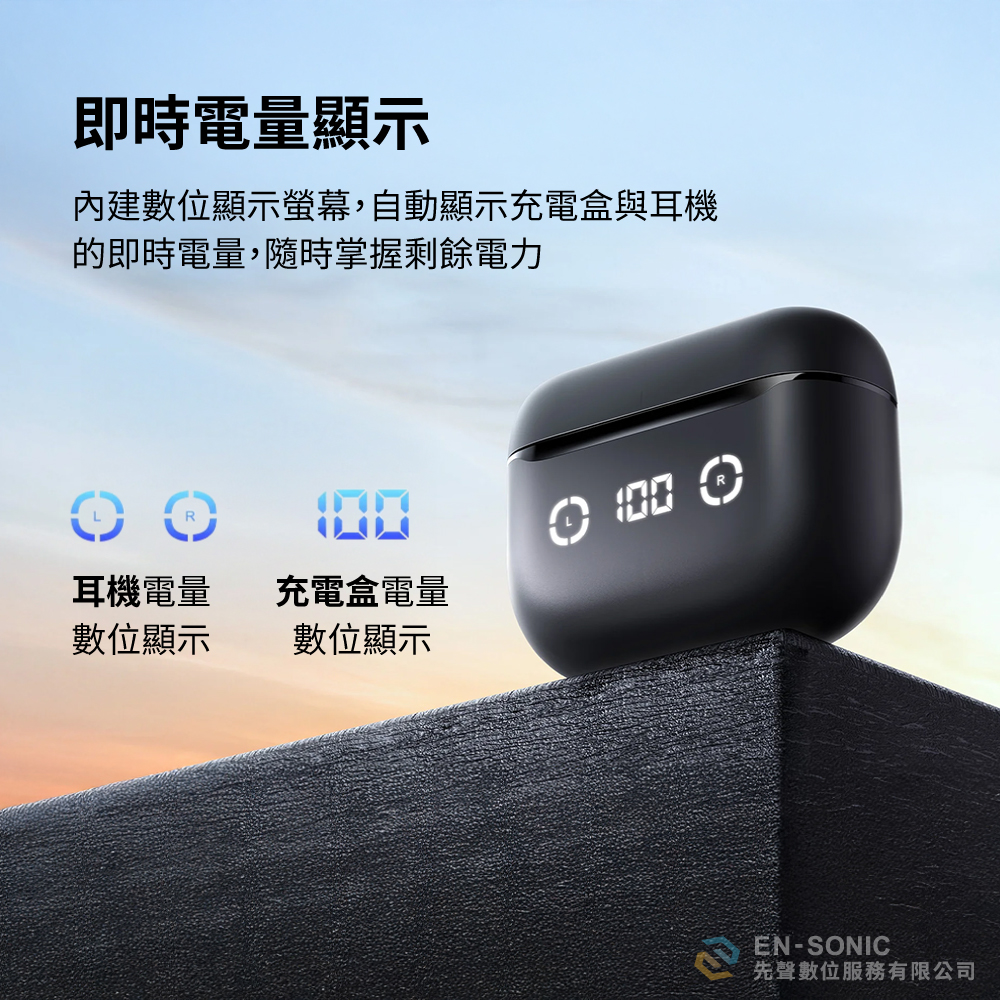 充電盒內置數字顯示屏,實時顯示耳機和充電盒剩餘電量,出門前快速掌握續航狀態。