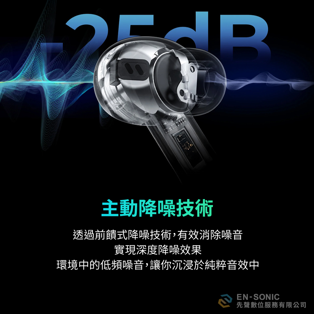 採用前饋式降噪技術,有效消除飛機、火車、辦公室等低頻噪音,讓您專注享受純淨音樂世界。