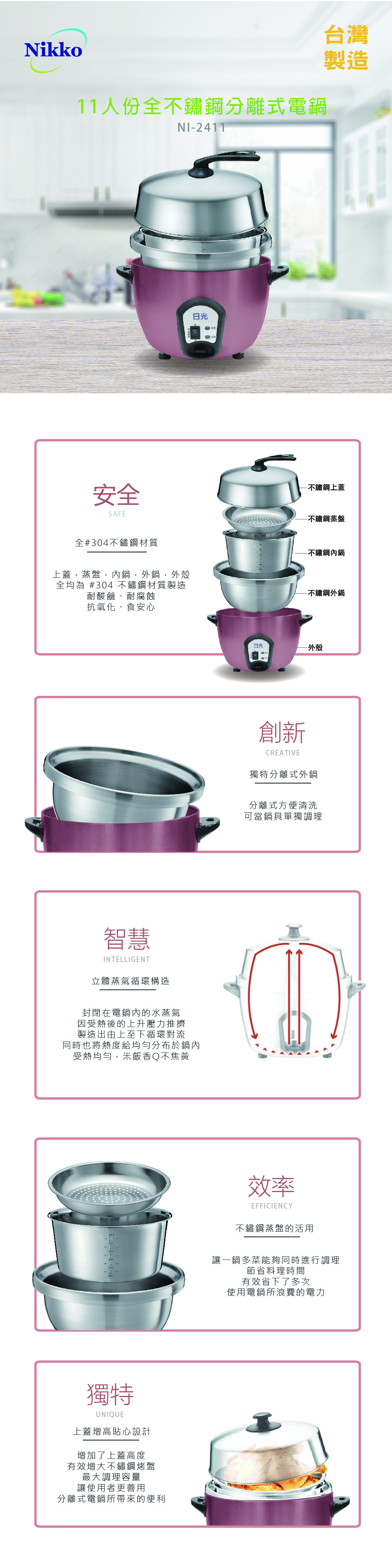 NIKKO日光 11人份全不鏽鋼分離式電鍋 NI-2411RG