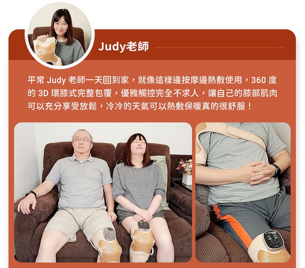 規 格 膝部按摩器(單隻)x2、延長輔助帶x1、充電線x1、說明書