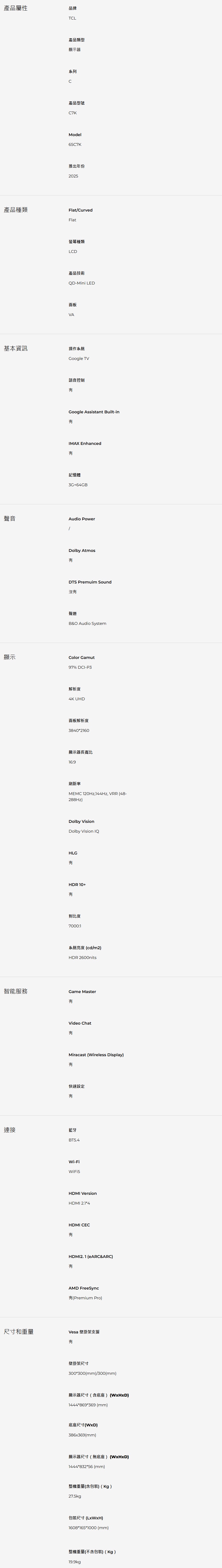 TCL 65C7K 65吋 C7K 頂級QD-Mini LED Google TV顯示器