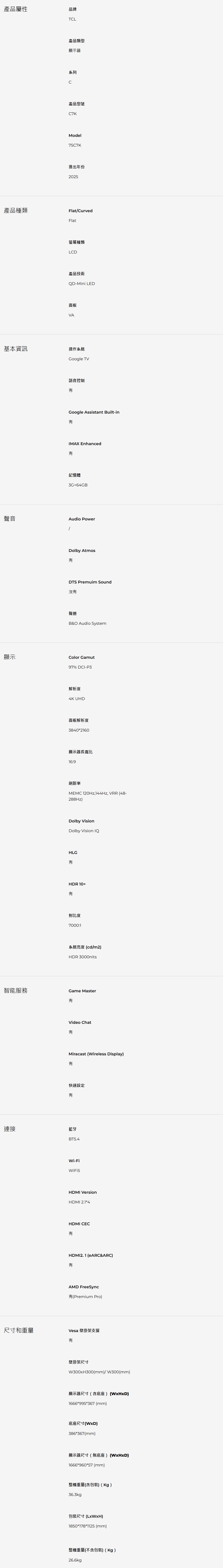 TCL 75C7K 75吋 C7K 頂級QD-Mini LED Google TV顯示器