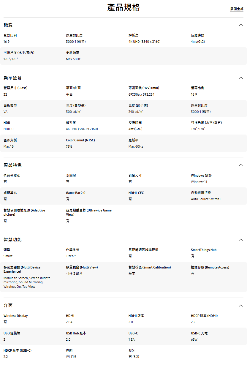SAMSUNG S32FM703UC 白 FollowMe PRO 移動式4K 32型智慧聯網螢幕