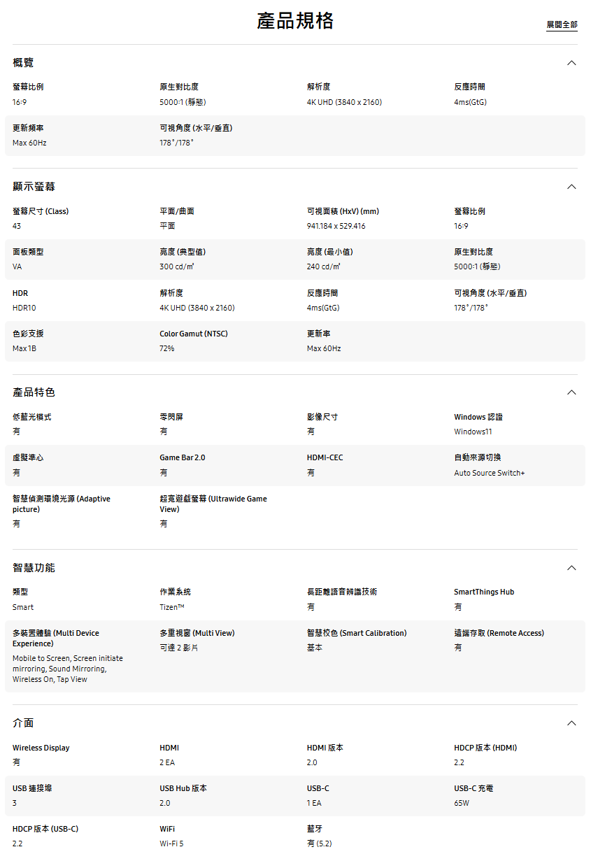 SAMSUNG S43FM703UC 白 FollowMe PRO 移動式4K 43型智慧聯網螢幕