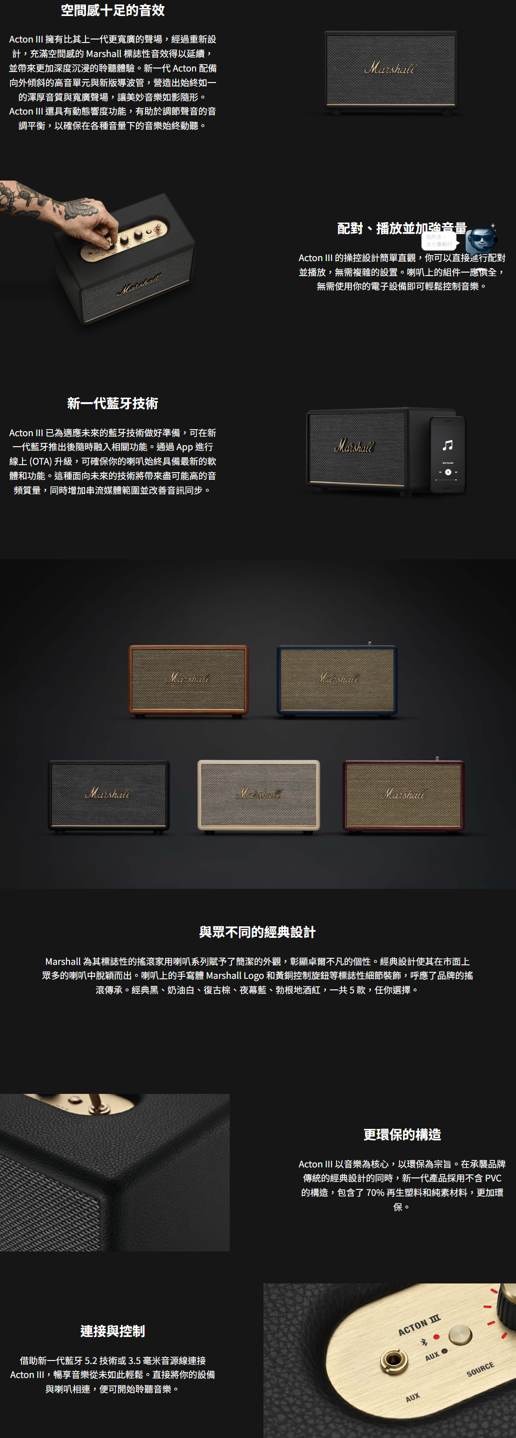 Marshall Acton III 三代藍牙喇叭 夜幕藍