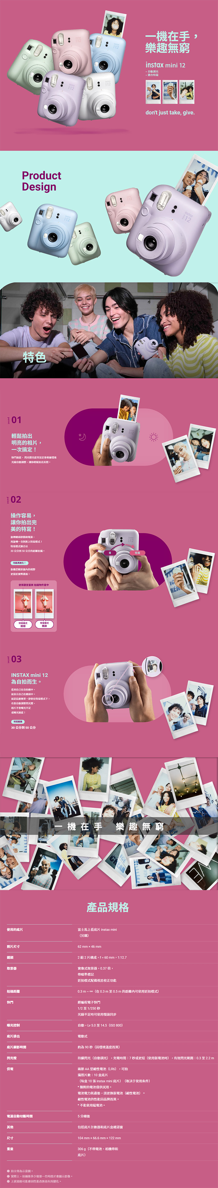富士 FUJIFILM instax mini 12 拍立得相機 即可拍 公司貨