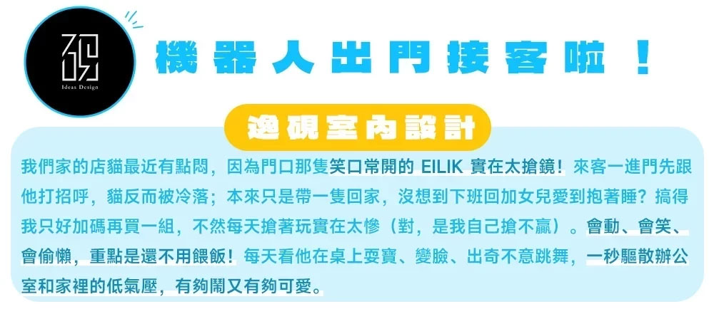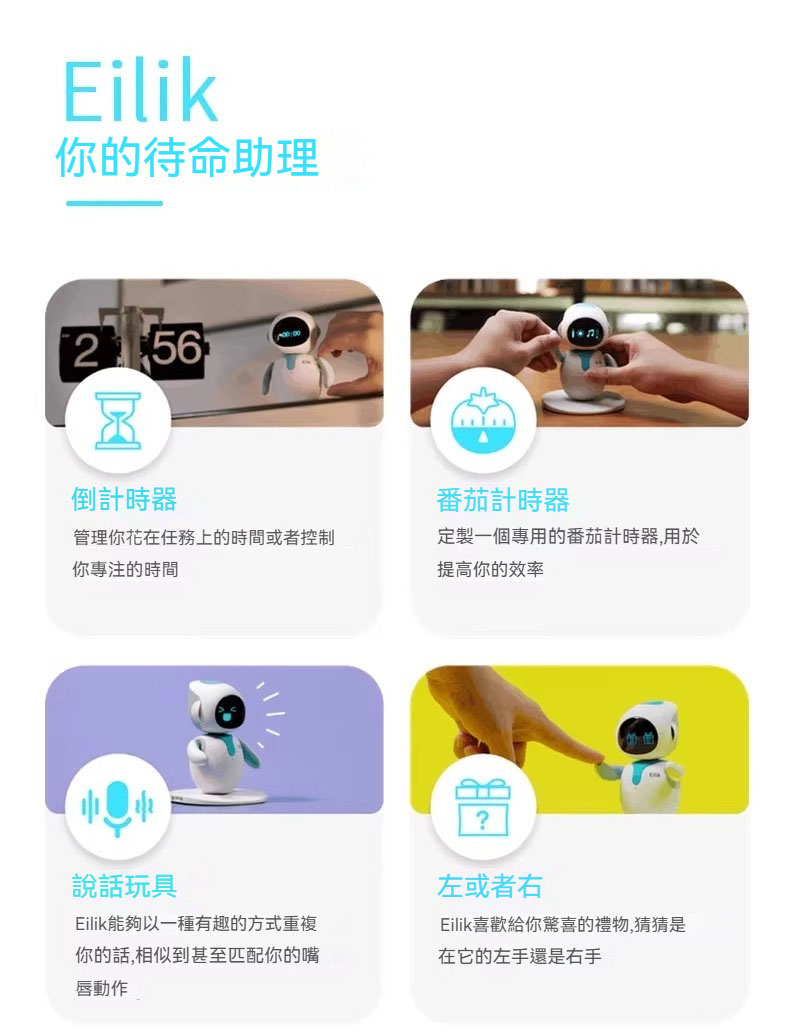 【 Eilik|桌面型陪伴機器人 】無厘頭的爆笑日常!喜怒哀樂陪你大鬧耍寶,快來認養快樂萌寵!