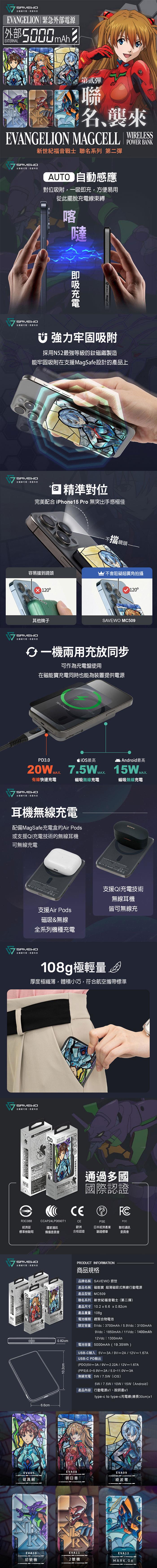 MagCell X EVANGELION 新世紀福音戰士 超薄磁吸式無線行動電源 5000mAh 第二彈
