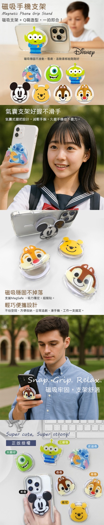 【正版授權】迪士尼 磁吸氣囊手機支架