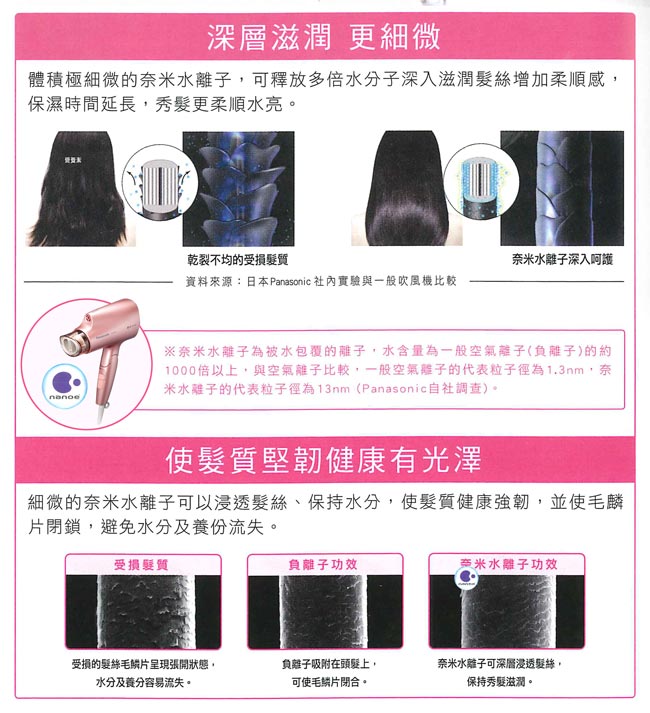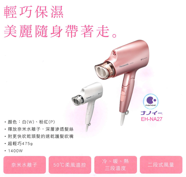 Panasonic 國際牌奈米水離子三段溫控折疊式吹風機EH-NA27