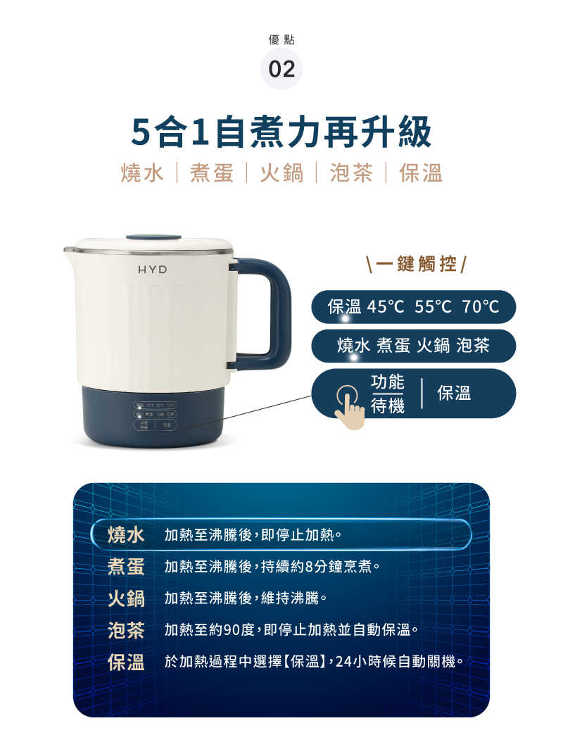 * 5合1多功能最齊全,燒水|煮蛋|火鍋|泡茶|三段保溫