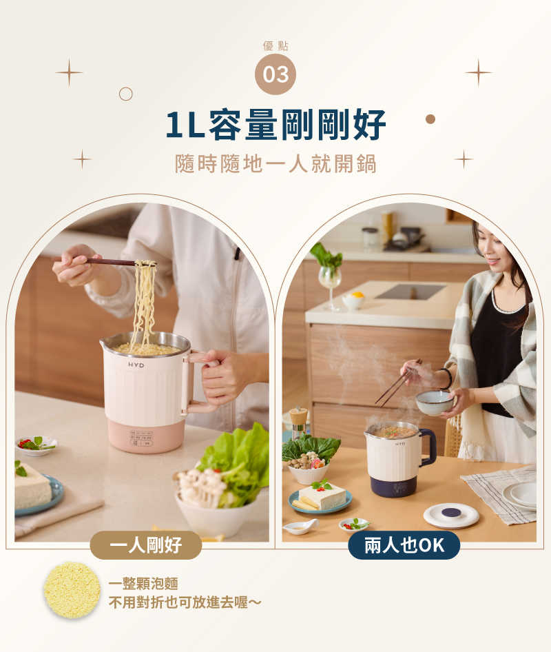 * 1L大容量,僅1.1kg,可輕鬆攜帶,隨時自煮