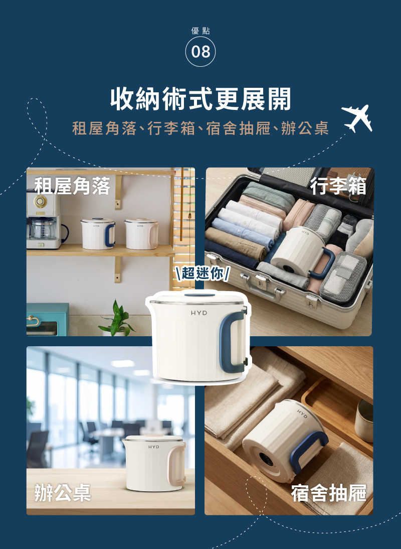 * 好收納 ,折疊式把手及分開式底座,可收入杯體,不佔空間