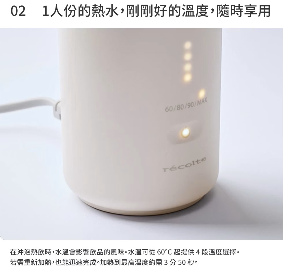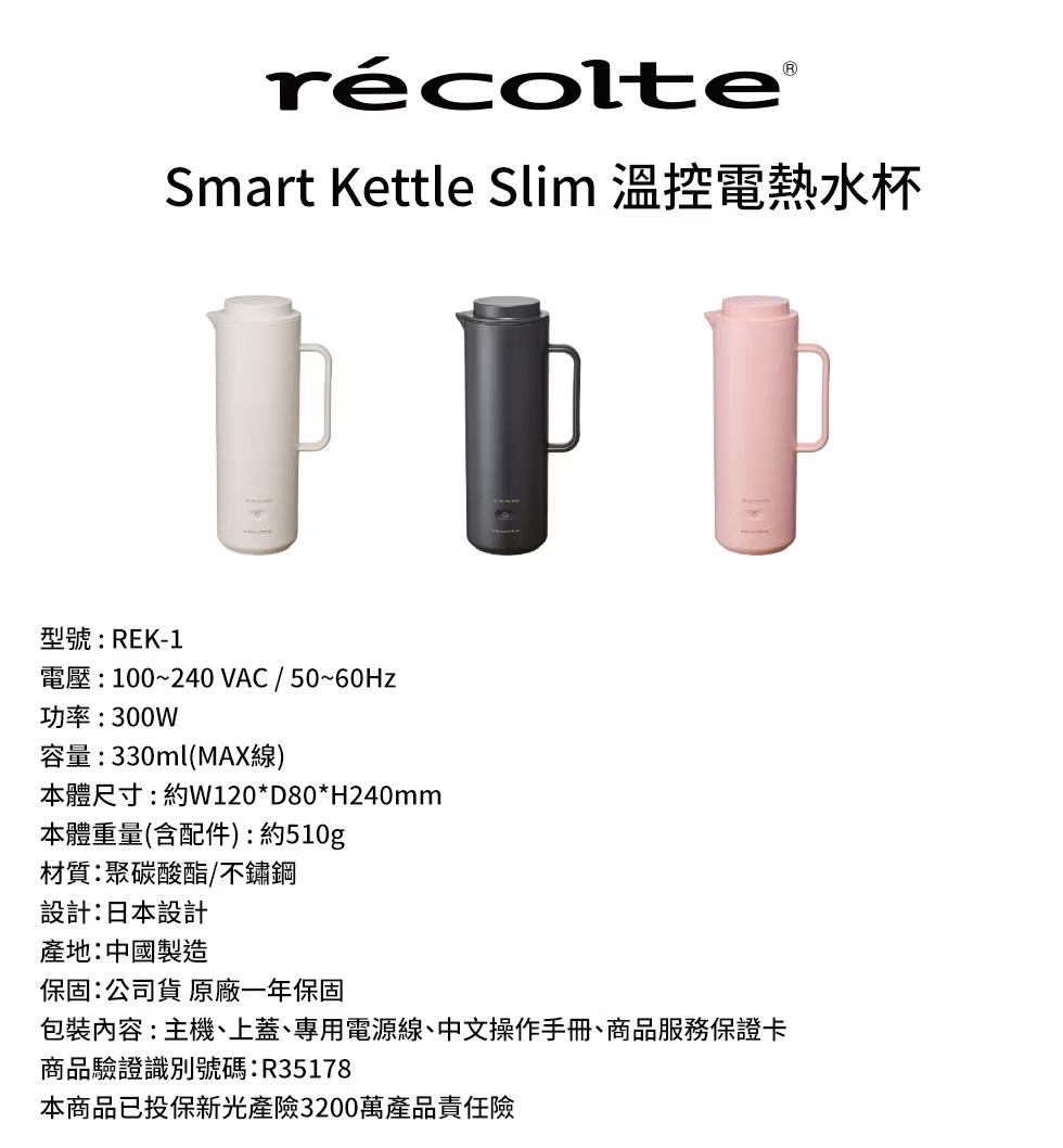 recolte Smart Kettle Slim 溫控電熱水杯 REK-1