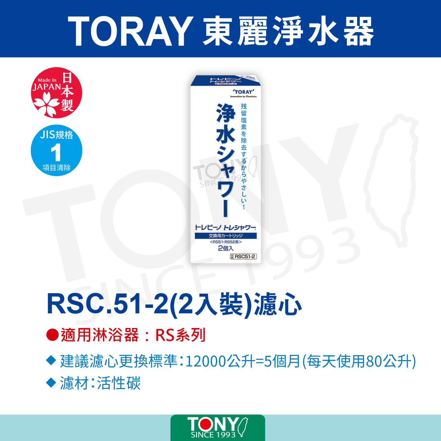 日本東麗TORAY 纖維活性碳除氯淋浴器濾心 RSC.51-2(公司貨)